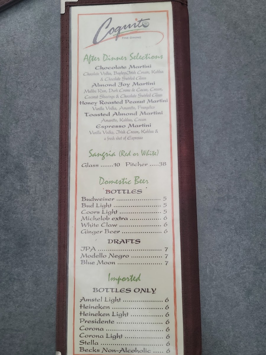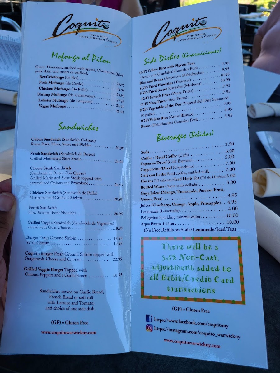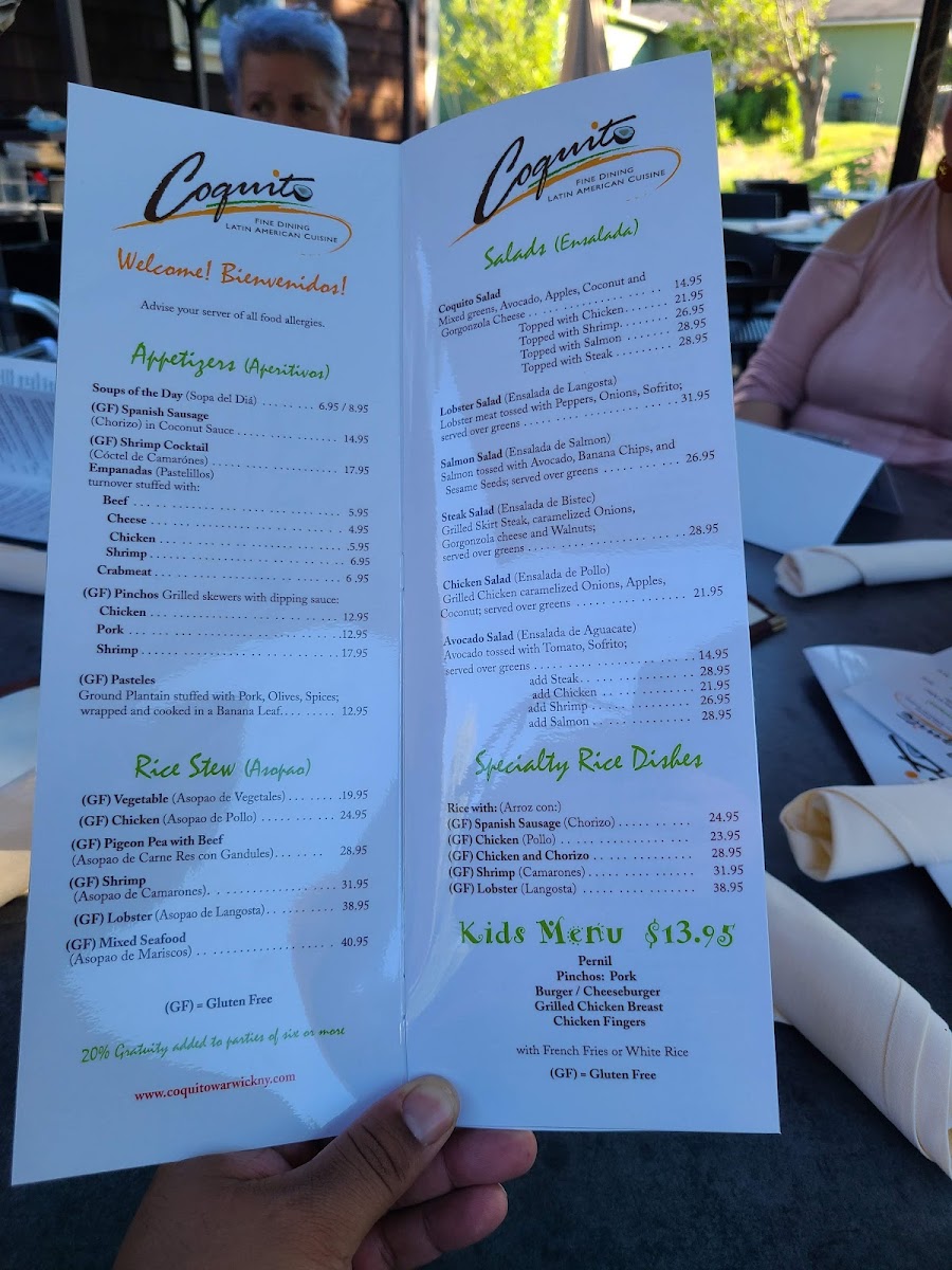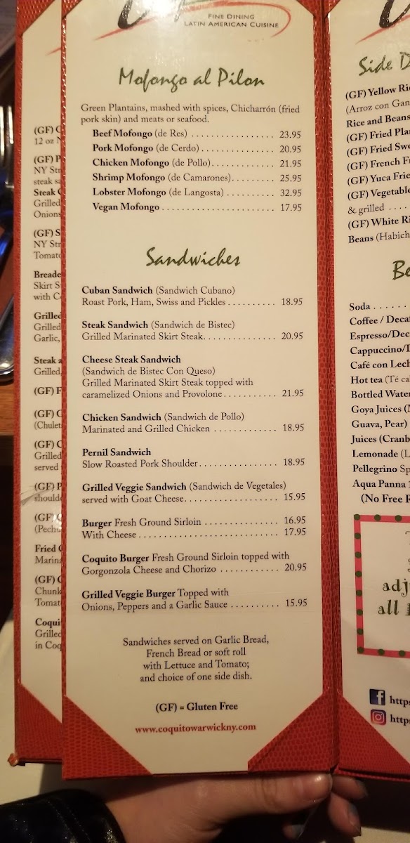 Welcome to Coquito, a delightful dining destination located in Warwick, NY, known for its flavorful Latin cuisine. The menu offers an exciting array of specialty rice dishes, featuring Arroz con Pollo and Arroz con Chorizo that capture the heart of traditional flavors at reasonable prices. Seafood lovers can indulge in Lobster in Garlic Sauce or Coquito Mahi Mahi, each expertly crafted to highlight fresh ingredients.